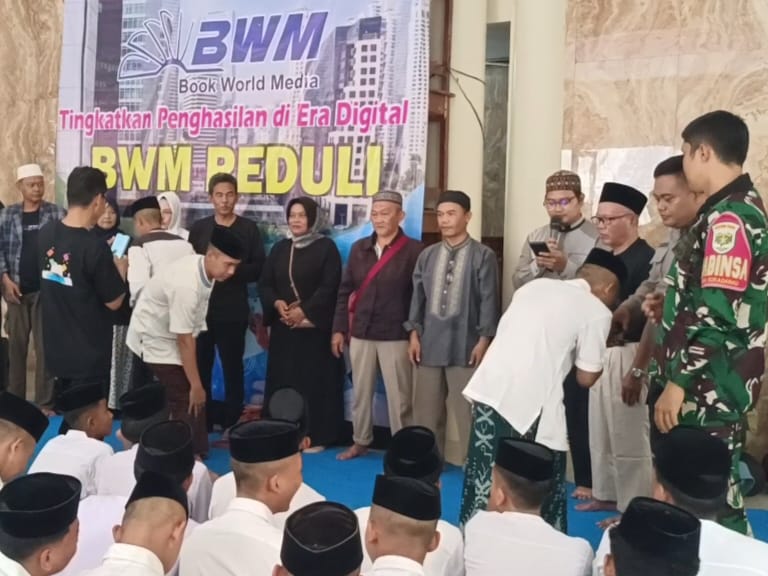 Bekasi, Bina TV – Perusahaan BWM, Book Word Media, menggelar Santunan dalam rangka hari lebaran anak yatim, yang biasa disebut bulan muharom, atau azzuro.