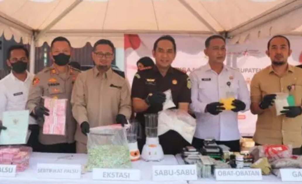 Adapun rincian barang bukti yang dimusnahkan berupa 1.529 gram sabu, 5.919 gram ganja, 29 bilah senjata tajam.