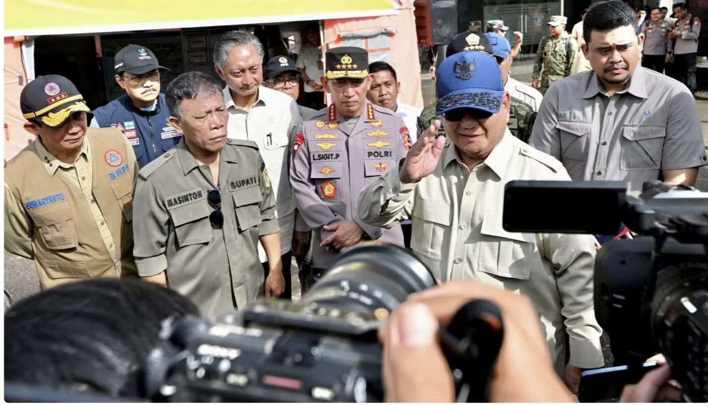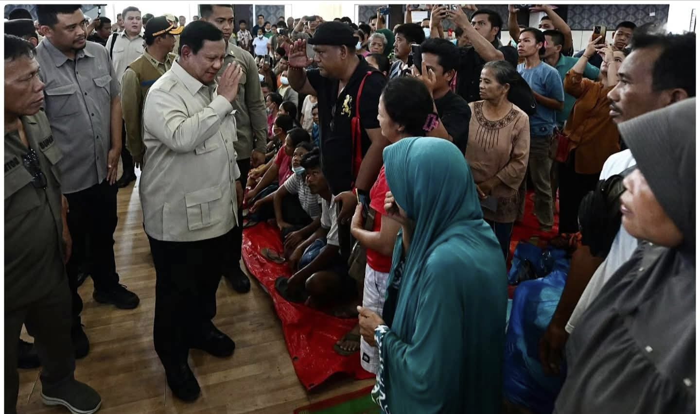 PANDAN, – Presiden RI Prabowo Subianto  melakukan peninjauan posko pengungsian warga terdampak banjir di GOR Pandan, Pada Senin (1/12/2025).