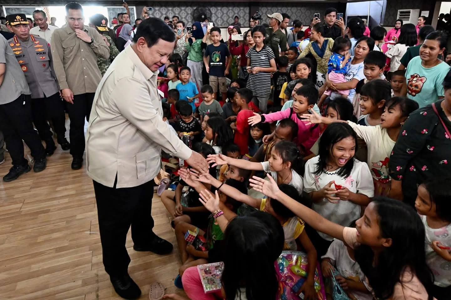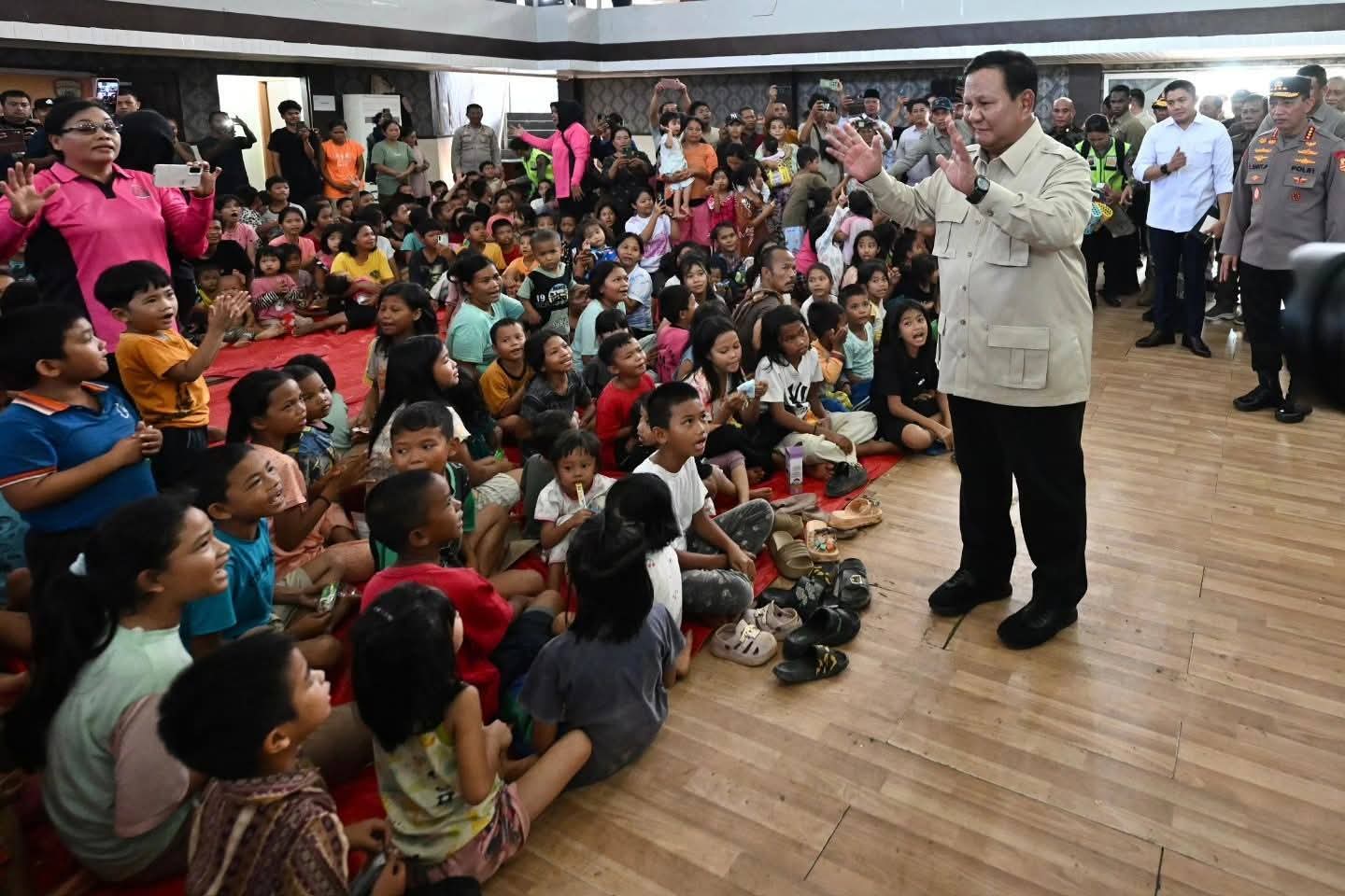 Presiden RI Prabowo Tinjau Posko Pengungsian di GOR Pandan